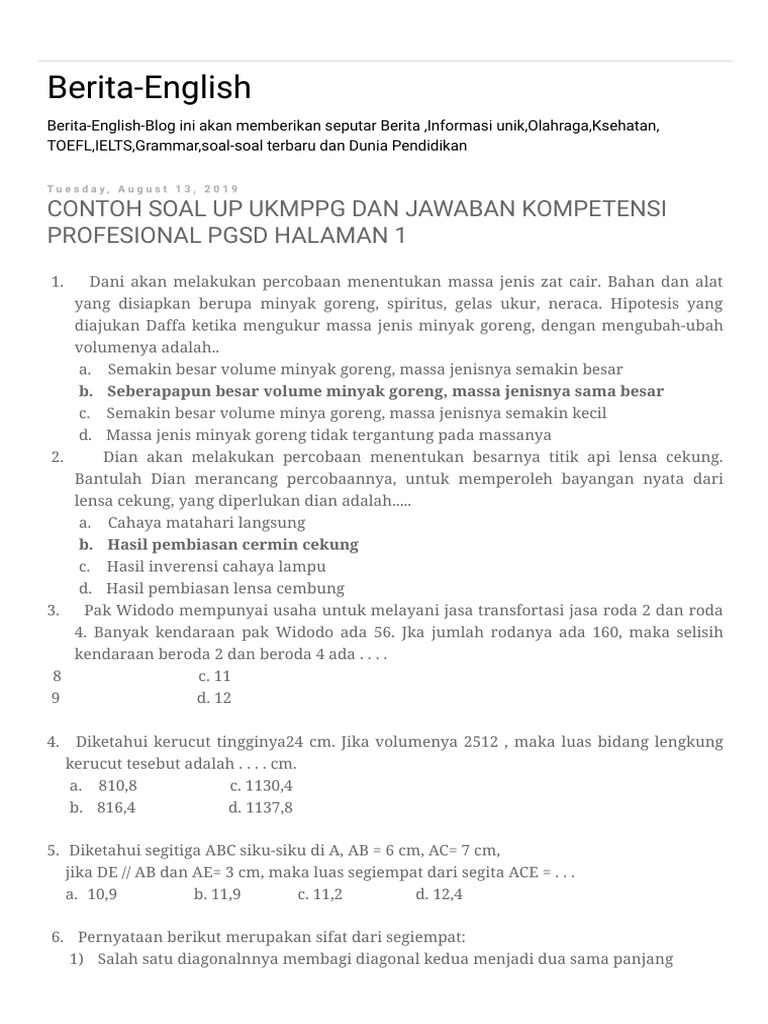 Berikut ini adalah soal up ukm ppg (uji pengetahuan uji kompetensi mahasiswa pendidikan profesi guru) sebagaimana pengalaman pribadi pada pelakasanaan sebelumnya.