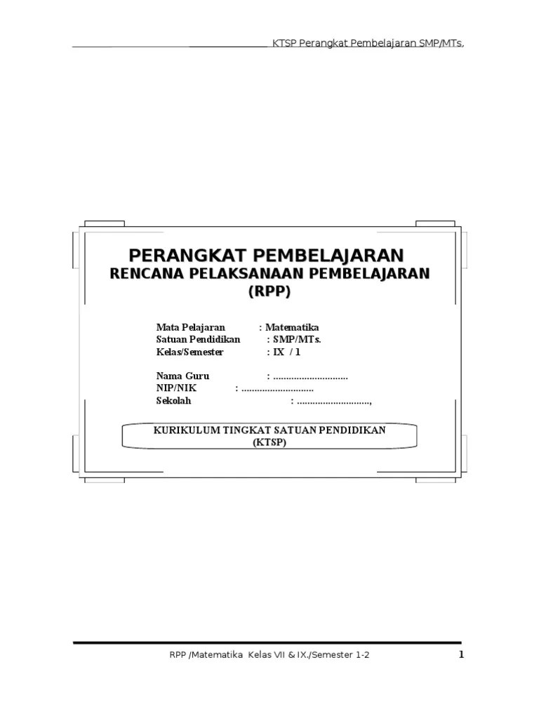 Ix ( sembilan ) semester : Rpp dan silabus matematika smp kelas 7, 8, 9 ktsp. Buku matematika untuk smp kelas vii ktsp 2006. Buku paket, yaitu buku matematika kelas viii semester 1. Rencana pelaksanaan pembelajaran (rpp) adalah rencana kegiatan pembelajaran tatap muka untuk satu .