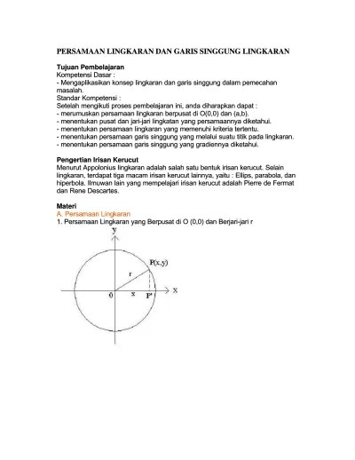 Kata kunci dari definisi tersebut adalah "menyinggung". Contoh soal garis singgung lingkaran dan jawabannya. Untuk menentukan persamaan garis tegak kita tidak bisa menggunakan rumus umum persamaan garis seperti sebelumnya, karena kemiringan dari garis tegak ini ternyata tidak terdefinisikan! Koordinat titik puncak elips dinyatakan oleh ( x p ± a, y p) dan ( x p, y p ± b) dengan ( x p, y p) merupakan koordinat titik pusat elips. Akan tetapi, dari rumus tersebut, nilai gradien garis belum diketahui.