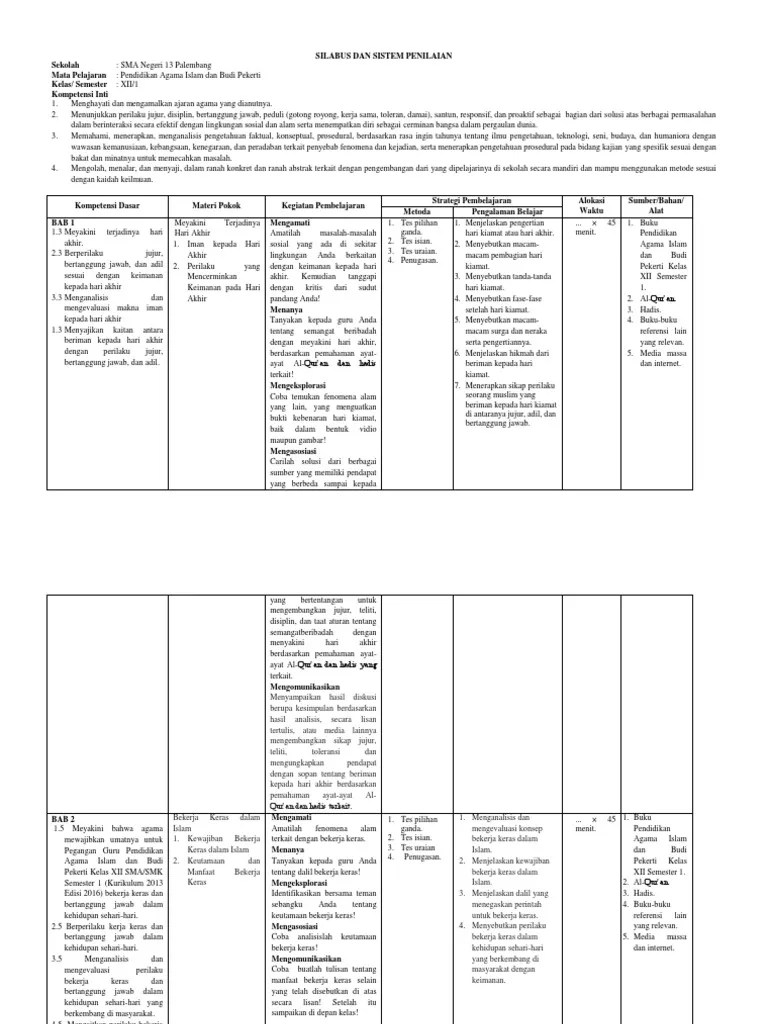Silabus pai k13 kelas 12 smk semester 1 dan 2 .